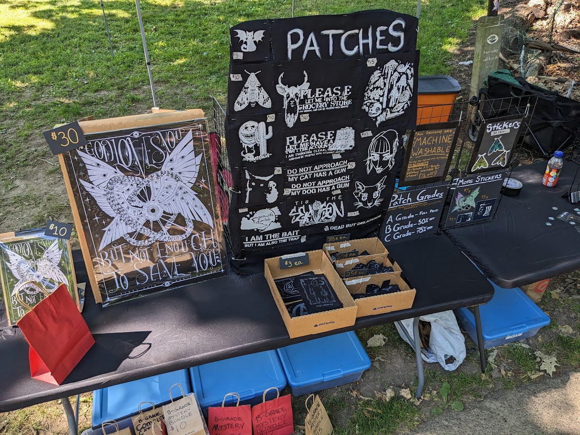 From haunting artwork inspired by the artist's lived experience, to cute and creepy merch, there is something for everyone. By making a purchase, you not only get to own a piece of their unique work but also directly support them in their artistic journey.